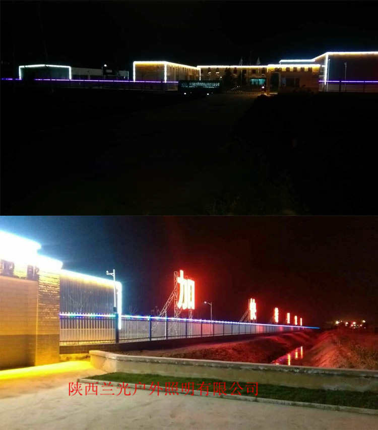 簡介—— 中節(jié)能大荔光伏農(nóng)業(yè)科技有限公司廠區(qū)亮化項(xiàng)目,是我們陜西蘭光照明2015年承接的亮化工程。公司設(shè)計(jì)師根據(jù)廠家要求簡單實(shí)用的特點(diǎn),整個廠區(qū)的設(shè)計(jì)全部采用線條燈和輪廓燈,將整個廠區(qū)的廠房、大門、廠區(qū)道路、辦公樓以輪廓勾勒的形式展現(xiàn)出來,照亮整個廠區(qū),達(dá)到客戶廠區(qū)樓宇亮化需求。